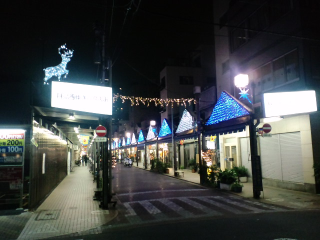 クリスマスということもあり、商店街には、貧乏くさい、い、いや庶民的な、イルミネーションが取り付けられている。