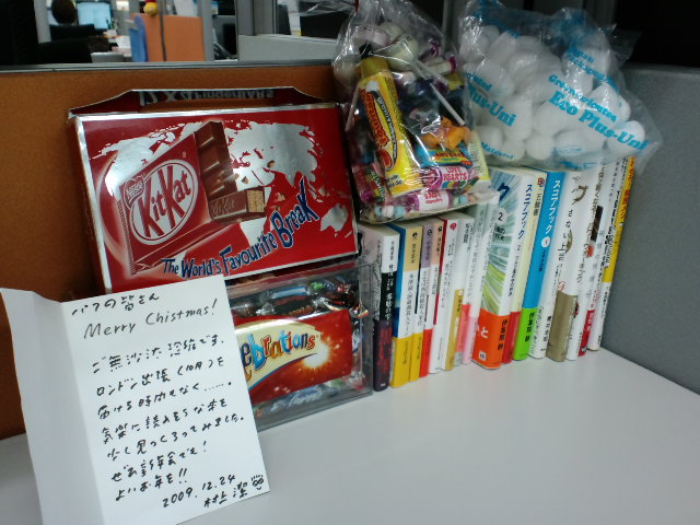 ムラカミサンタさん、クリスマスプレゼント、本当にありがとうございました。新年会、タカタに企画させますので、ぜひ!!