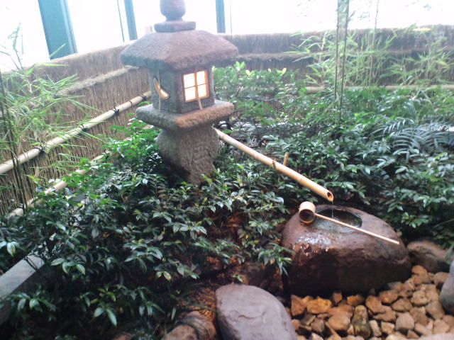 で、すごいのは通された場所。なんとビルの最上階に設けられた日本庭園なのだ。